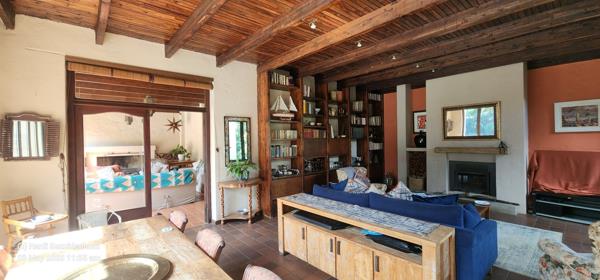 The open-plan living and dining areas are seamlessly connected to a lush, manicured garden and an inviting pool area. Step outside to a private oasis where a sparkling swimming pool awaits, ideal for summer days and outdoor relaxation.