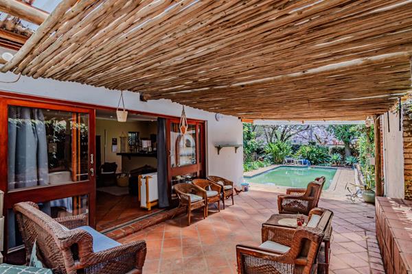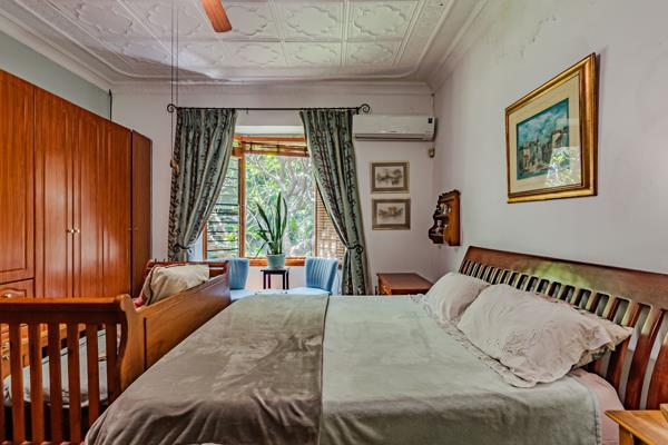 Homely Classic in Brooklyn. Graceful 1920''s classic in Jacaranda smothered Brooklyn. Well renovated and maintained with original features such as Oregon pine floors, doors and window frames, beautiful pressed steel ceilings, lead glass windows, Victorian black and white tiles in bathrooms, original cozy fireplace, brass door knobs and light swithes, two bay windows. Large pool, patio and entertainment area. Inviting braai area. Separate flat, ideal for students and to generate extra income. Well established garden with large trees and a thorough sprinkler system, connected to a borehole, to keep the garden well watered year round. Four spacious bedrooms, two leading onto the garden. TV room with custom built-in ornate wooden fireplace and built-in bookshelves. Charming lounge with bay windows and views onto the garden, separated from the TV lounge by lovely large custom made original wooden doors. Modern spacious kitchen with cherrywood finishes, can fit table with six chairs. Big scullery and wash room combination with four grocery cupboards and space for four appliances.