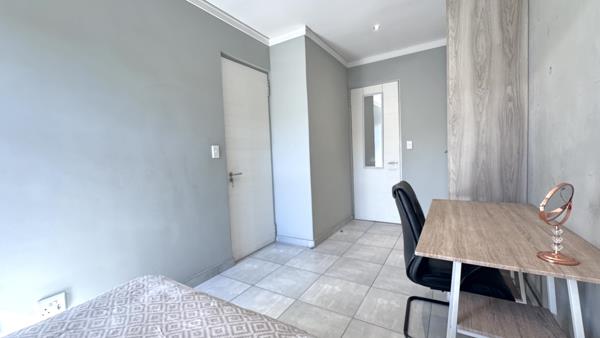 Super Space in the BEDROOM comes with Built-in Cupboards and Room for a Work Area. The EN-SUITE BATHROOM is fitted with a Shower and Floating Vanity.