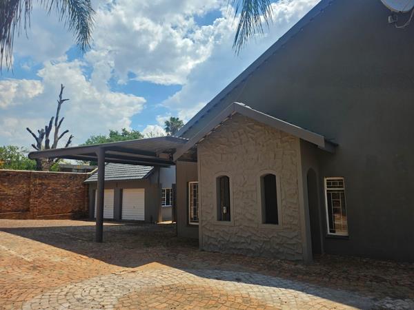 BROOKLYN GOOD WILLIAM STREET ADDRESS WEST OF JAN SHOBA STREET WALK 10 MINUTES TO TUKS AND SCHOOLS. This is indeed a multi-functional and versatile property. Also perfect as a TWO FAMILY HOME with a neat and spacious garden cottage with 2 bedrooms, lounge, bathroom, kitchenette, and an under roof private entertainment area can also be used as a separate office wing with ample additional and safe premises parking. Main house with 3 enormous living areas, modernized kitchen, scullery and pantry. 5 Spacious bedrooms with ample built-in cupboards and 3 bathrooms. Tile flooring. Good security, double garage, carports and paved additional parking. Bambie [removed]