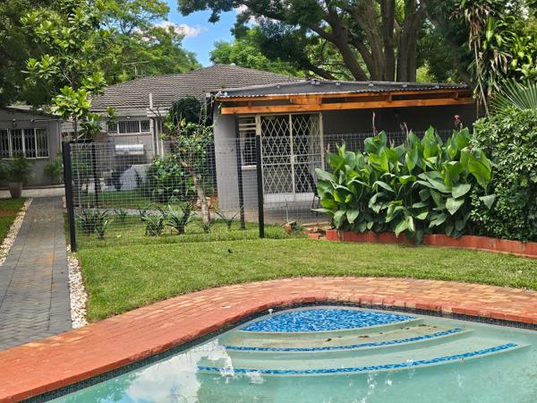 Lovingly renovated, very neat, lots of character with wooden floors and high ceilings. Lounge and an open plan dining- and well-equipped kitchen area. 5 Spacious bedrooms with built-in cupboards, 2 bathrooms. BONUS: spacious, modernized and fully self-contained garden cottage with lounge, kitchen, bedroom and bathroom with private garden area that can be rented for up to R7 500 per month. Laundry, rainwater tanks, Wendy house for garden tools, beautiful, landscaped garden with huge trees plus a great outdoor entertainment area around the sparkling pool. Under roof braai area leading and veranda leading off the indoor entertainment area. Good general security and under roof parking for 4 to 6 vehicles. Also perfect for buy-to-let with present income totalling R37 800pm