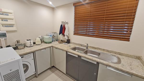 Open plan kitchen with separate scullery and expert finishes throughout, including a BUILT-IN refrigerator, microwave, washer /dryer and dishwasher.
