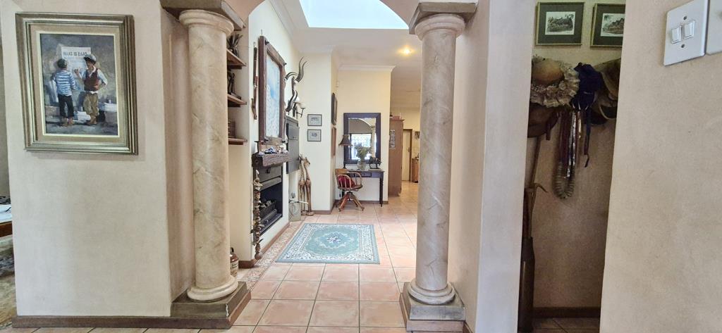 The spacious living areas seamlessly integrate elegance and warmth. A magnificent gas fireplace is strategically located to serve the surrounding rooms, including the formal lounge, ensuring comfort and a cosy atmosphere during cooler evenings. Adjacent to this fireplace is a built-in gas braai, providing a perfect indoor entertainment setup that is both sophisticated and convenient.