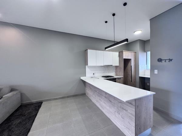 Experience refined living in this exquisite 107 sqm Brooklyn residence. The open-plan design seamlessly integrates a sophisticated lounge and dining area with a contemporary kitchen, featuring sleek white and wood-grain cabinetry, a gas hob, and a chic breakfast bar. Elegant tiled flooring and recessed lighting define the modern aesthetic. Two luxurious bedrooms, each with an en-suite bathroom and built-in wardrobes, offer ultimate comfort. A private balcony, complete with a built-in braai, provides captivating scenic views of blooming Jacaranda trees, perfect for discerning entertainers. This secure, gated community boasts 24-hour security, CCTV, and fibre. Sustainable living is assured a battery inverter, and a solar geyser. Two dedicated parking bays enhance this exceptional Pretoria offering.