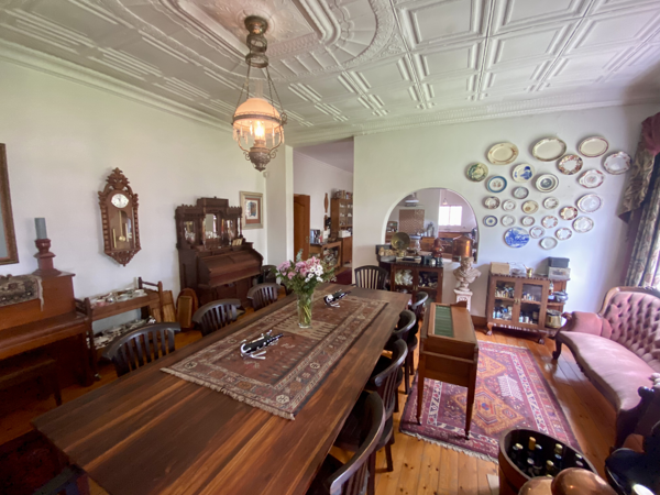 The main house is thoughtfully laid out on a single level and welcomes you with high ceilings, pressed ceilings, and rich parquet floors that immediately create a sense of warmth and classic charm. Three spacious bedrooms, two well-appointed bathrooms, and a versatile study provide comfortable family living, while still offering flexibility for working from home or creative use.