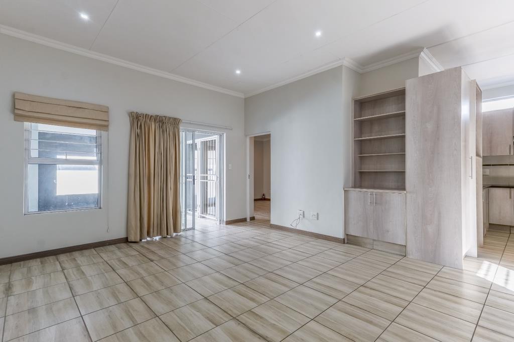 Discover this charming 3-bedroom, 2-bathroom residence nestled within a secure estate in Erasmus Park, Pretoria. The property presents an inviting kerb appeal with its modern grey exterior, white picket fence, and manicured lawn. As part of a security complex, residents benefit from 24-hour security, electric fencing, and access control. Inside, an expansive open-plan living area features contemporary tiled flooring, neutral walls, and elegant recessed lighting, flowing seamlessly into the modern kitchen.