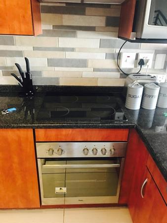 The kitchen is modern in design and is fitted with granite tops and lots of built-in cupboards and place for your appliances.