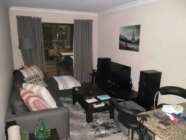 SPACIOUS proper 1 Bedroom apartment in Small Quiet Intimate complex. Bedroom separate from living area and kitchen. NOT a Batchelor or Studio !! Can easily fit 2 Occupants, Double bed and desk in bedroom. Only for the young professional or SERIOUS student. Very safe location. Good security. Block from GauTrain station, shopping centres and UP Campus but is shielded from traffic noise by other buildings. Close to Office Parks and Embassies. Upmarket Apartment with top quality finishes. Sunny and Spacious. North facing view. Easy access to motorways and bus routes.