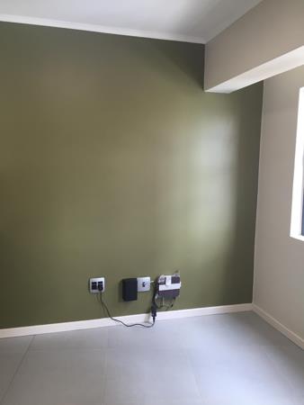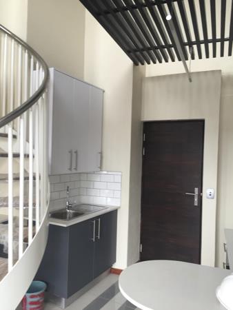 The kitchen and living room lead out onto a covered balcony. The kitchen has enough storage space, with room for a large refrigerator and dishwasher. The lounge area also has a work station / study area, which has digital connectivity on hand.