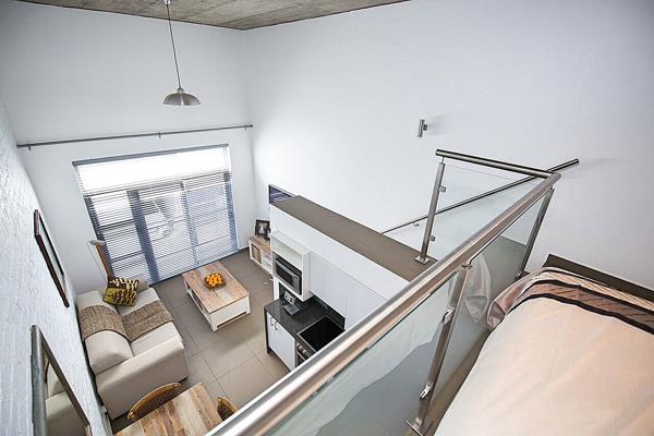 This ultra modern industrial loft apartment is opposite Loftus Versveld. It is open plan with a loft bedroom, bathroom with a shower and an open plan small lounge, dining area and kitchen.