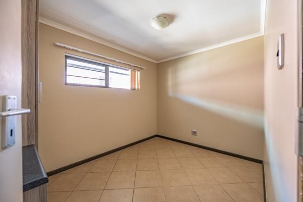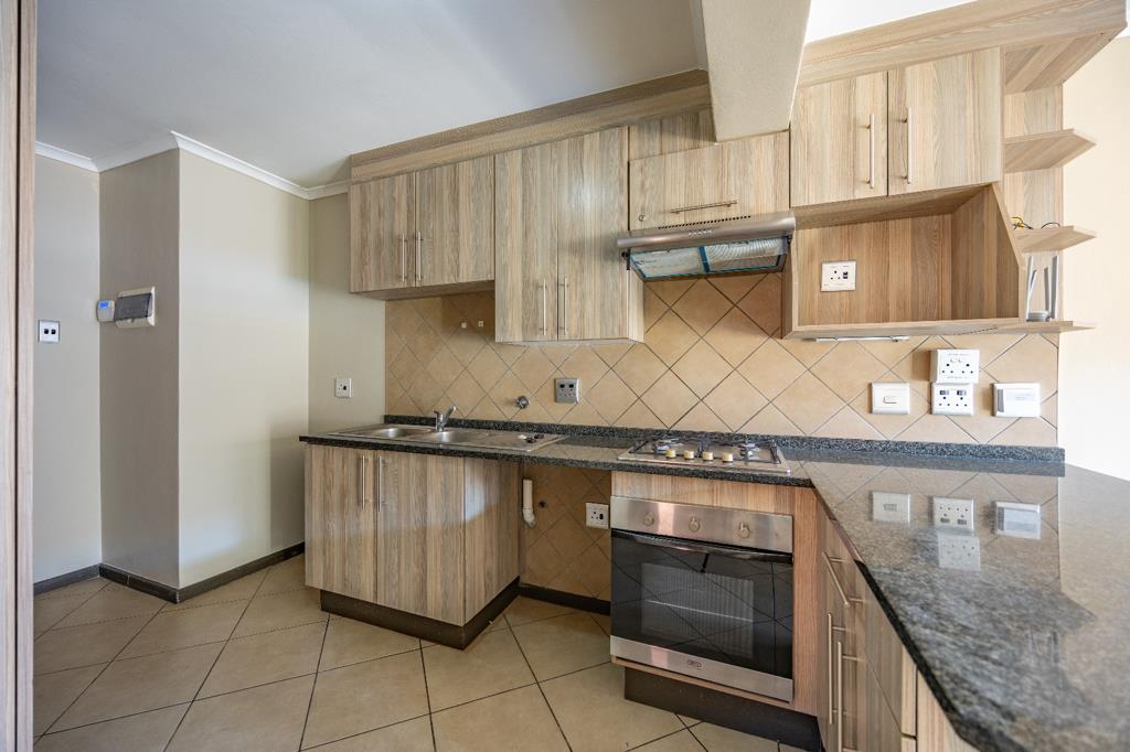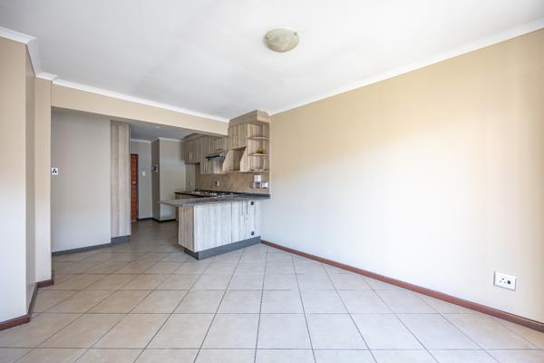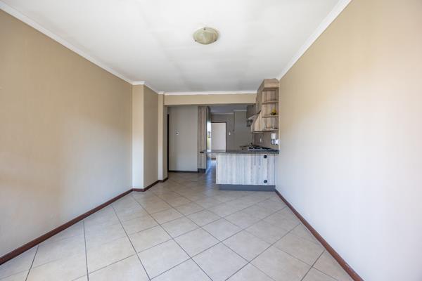 This stylish apartment offers a comfortable and practical layout with modern finishes throughout. The open-plan kitchen is fitted with a gas stove and provides space for one appliance and a single-door fridge. The kitchen flows into a spacious living area that opens onto a private balcony featuring a built-in braai perfect for entertaining or relaxing in the open air.