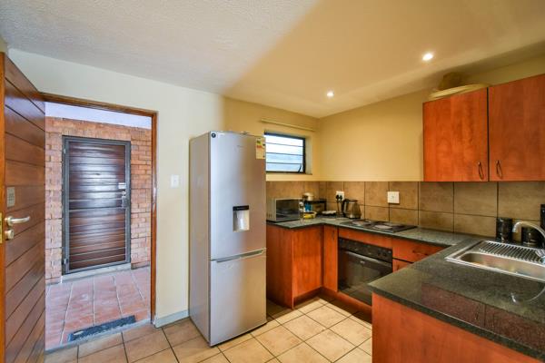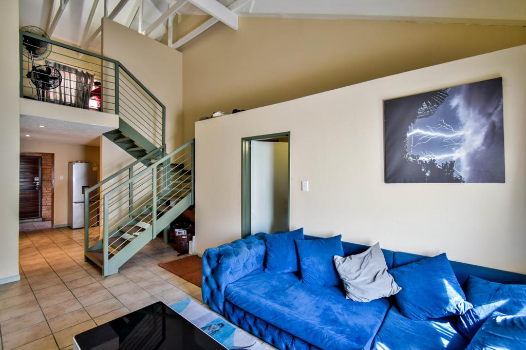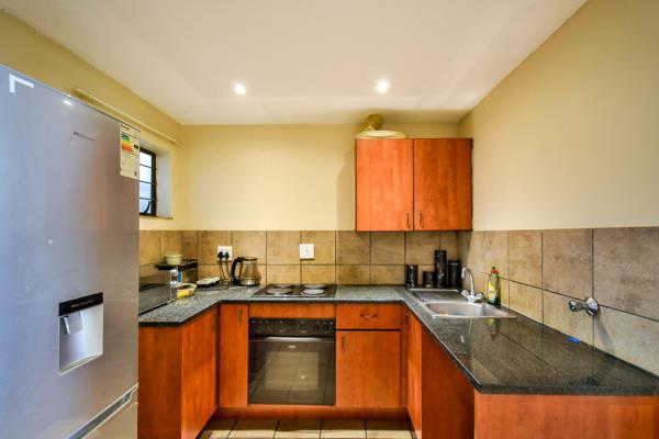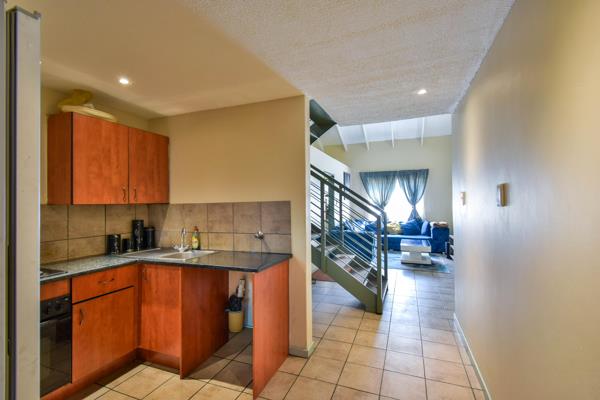 The unit features an open-plan living area, a well-equipped kitchen, a spacious loft bedroom with built-in cupboards, and a neat bathroom. Secure access, parking, garage, and a peaceful, well-managed complex complete the package.