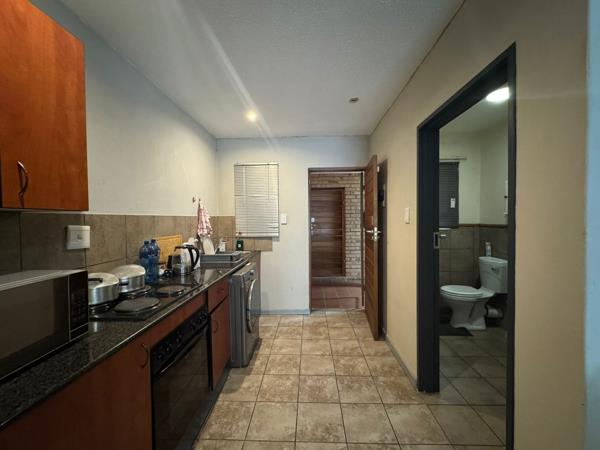 This first-floor bachelor unit at Cambridge Court, Park Street, Hatfield, is an ideal investment for student rentals. The unit features a kitchen and a bathroom with a shower, a main room that fits a double bed and a desk, and a sunny balcony. It includes a dedicated garage and an extra parking space. Currently rented for R5,500 per month, this unit offers immediate rental income and strong long-term investment potential.