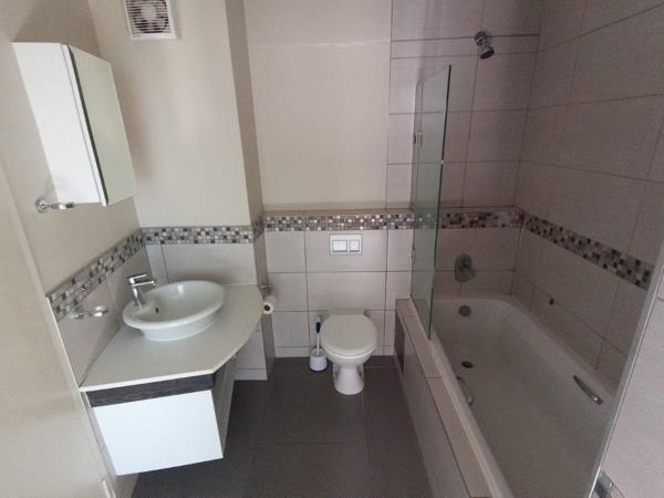 The kitchen is equipped with a full oven-stove, and an extractor fan. There are plenty of cupboard space in the kitchen and granite tops. The living room is spacious, neatly tiled and walks out onto the balcony with a good view.
