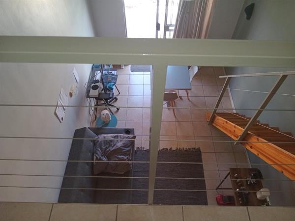 The apartment features a spacious bedroom with en-suite bathroom and build-in cupboard on mezzanine level. The double volume open plan lounge and kitchen area is functional and convenient for daily use and opens up onto a balcony that makes the apartment light & airy. Solar Panels in place for full back-up when there are power outages in the area. Neat and well maintained complex.