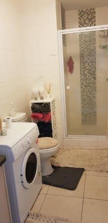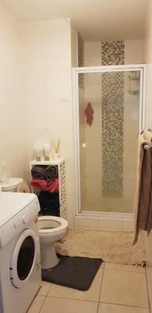Open plan kitchen with a washing machine or dish washer connection, security gate, modern furnishings, large bedrooms and a large bathroom. The bathroom has a toilet, basin, a beautiful shower, and is fitted with another washing machine connection.