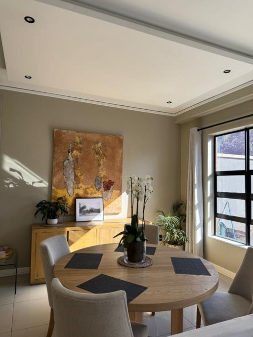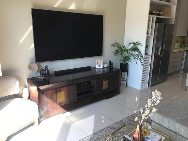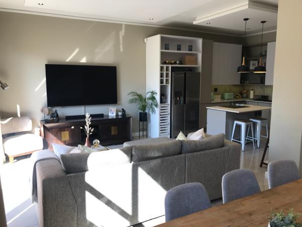 This fully furnished apartment offers 2 bedrooms, 2 bathrooms and a guest toilet. The apartment has stylish and modern finishes, with an open plan kitchen, storage room and separate laundry. The living areas leads out onto the patio which includes a built-in braai.