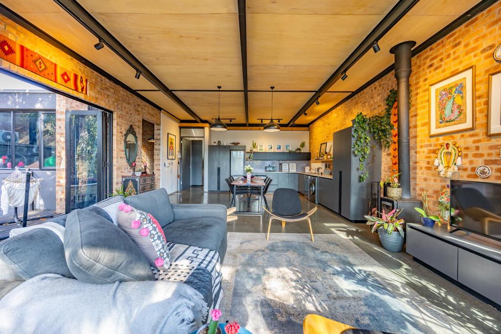 Light-filled living and dining areas opening to a tranquil balcony situated amongst the treetops.