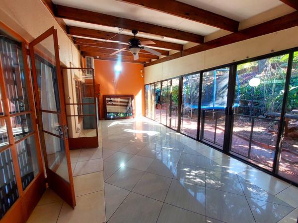 This 3-bedroom, 2-bathroom home sits on a large, elevated erf with a terraced garden that catches the afternoon light just right. The layout is practical, the bones are solid, and the slope leads you to unexpected extras: a swimming pool, views, and a self-contained Wendy house flatlet perfect for rental, guests, or a workspace.