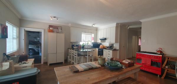 The heart of the home is the open-plan living and dining area with a kitchen, expertly designed for seamless entertainment. The kitchen flows effortlessly into the dining room. The living room walks out to the picturesque patio, complete with a built-in braai for alfresco dining.