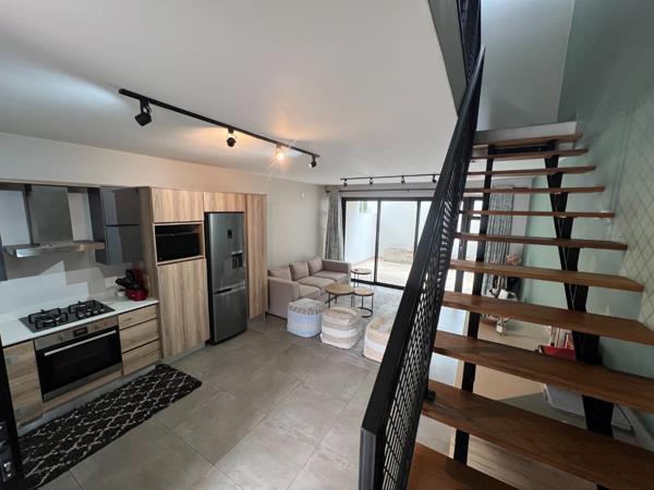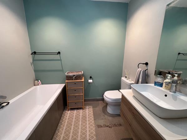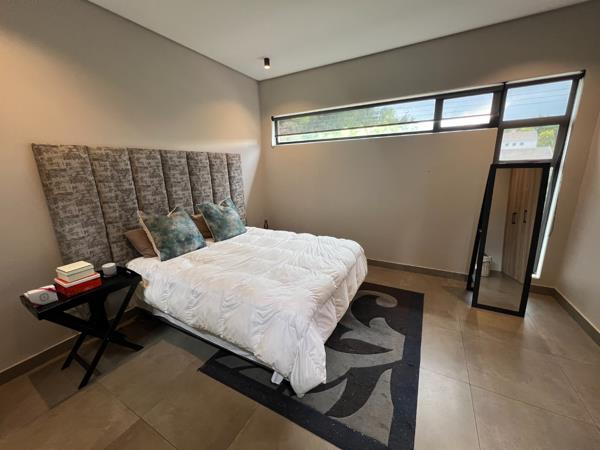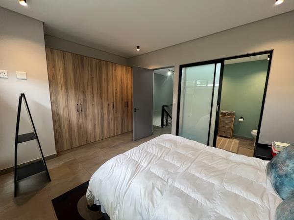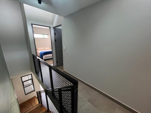 Nestled in the prestigious Lynnwood Gardens Estate, this modern 2-bedroom townhouse offers the perfect blend of style, comfort, and lock-up-and-go convenience. Designed with high ceilings and contemporary finishes, the home feels spacious and inviting, while the open-plan living area seamlessly connects to a covered patio with a built-in braai, making it ideal for entertaining. The well-equipped kitchen features space for three appliances and a gas hob, ensuring both functionality and style. Upstairs, two spacious bedrooms are complemented by two modern bathrooms, offering a serene retreat.