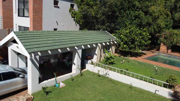 The address to be. Get rid of loadshedding and cable theft. Live off the grid with 20x 550-watt Solar panels, 4x 5Kw Lithium-ion batteries and 16 KVA inverter. Big panhandle stand in quiet area. Neat house with open plan kitchen, scullery/laundry, lounge, dining room with family room and office. Four bedrooms, Main en-suite with air-conditioning, two bathrooms and patio with built in braai. A separate one-bedroom flatlet with bathroom and open plan lounge and kitchenette. A pool and braai area with pizza oven under huge trees. Back of the garden a nice rocky area and play area for the kids. Two carports and staff accommodation. Within walking distance from nursery school and Lynnwood Primary school. Safe gated area and very sought after neighborhood.