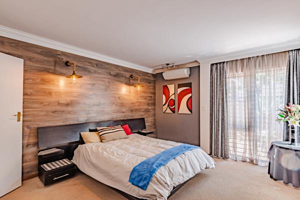 A covered patio with built in braai and small manageable garden makes maintenance easy.