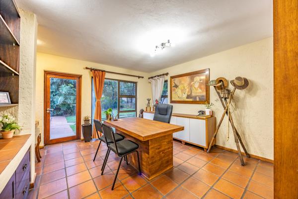 Outdoors, this entertainers dream boasts a sparkling pool, boma, covered patio with built-in braai, dedicated braai room, and office space. Extras include four garages, generator, prepaid electricity, irrigation, and top-tier estate security. Space, prestige, and privacy come standard in Lynnwood Gardens.