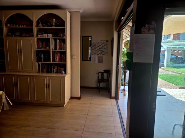 Spacious living and entertainment areas lead to a patio, garden and pool.
