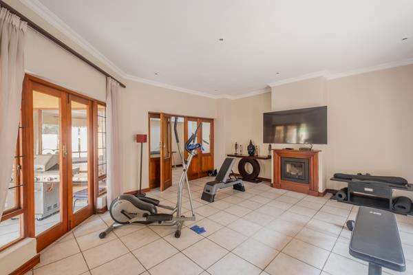 The undercover patio features a built-in braai, overlooking the sparkling swimming pool and low-maintenance garden perfect for year-round entertaining.