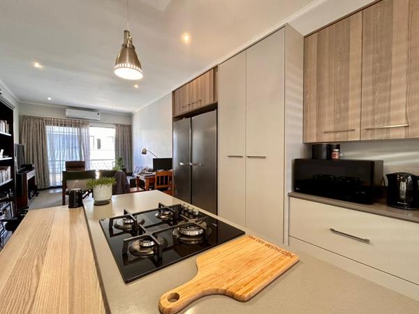 The kitchen is equipped with a breakfast bar, gas stove top, a built-in Miele washer and dryer (included if you wish) and ample cupboard space.