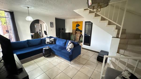 This spacious 3-bedroom townhouse in Maroelana offers the ideal setting for family living. Nestled in a secure complex, this neat duplex boasts a generous living room that flows into a dining area, perfect for hosting family gatherings. A convenient guest bathroom is located on the ground floor. The kitchen features ample space, oven, hob and extractor. A small courtyard off the kitchen provides extra covered space.