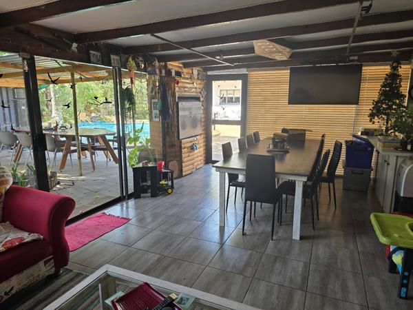 Fantastic entertainment options: a large indoor area with a built-in braai and an expansive outdoor space with its own braai.