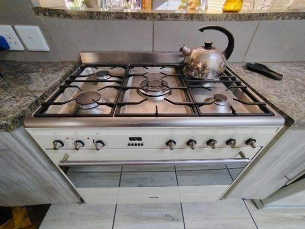 At the heart of the home lies a stunning modern kitchen, equipped with a 5-hob gas stove and a serving deck that seamlessly connects to the entertainment areaideal for indoor braais and enjoying Springbok games. With doors opening to the outside, the kitchen allows for a refreshing breeze and includes a spacious scullery and charming barn doors leading to a pantry.
