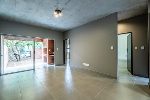 Large open plan living and dining area opening out to a covered patio with built in Braai