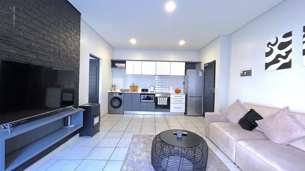The apartment features an open-plan kitchen and lounge, a spacious bedroom with built-in cupboards, and a sleek bathroom with quality fittings. Enjoy the convenience of covered parking, controlled access, and proximity to top amenities including Menlo Park Shopping Centre, Greenlyn Village, and the University of Pretoria.