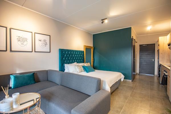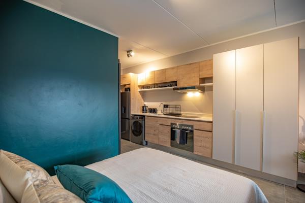 This modern bachelor apartment in the sought-after Kayman 502 development offers a perfect blend of style, security, and convenience. Measuring 36 m, the unit features an open-plan living and bedroom space with a sleek, contemporary kitchen and a well-appointed bathroom.