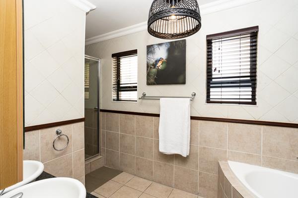 Also downstairs you will find a spacious guest bedroom with wall to wall build in cupboards and full en suite bathroom.