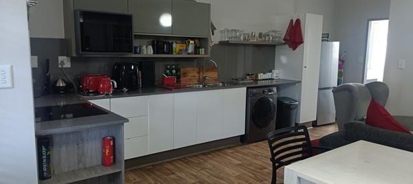 The spacious, open-plan living area features stylish vinyl flooring and a contemporary design, creating a welcoming and airy atmosphere. The well-designed kitchen is both functional and versatile, ideal for whipping up quick lunches or crafting gourmet dinners with ease.