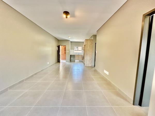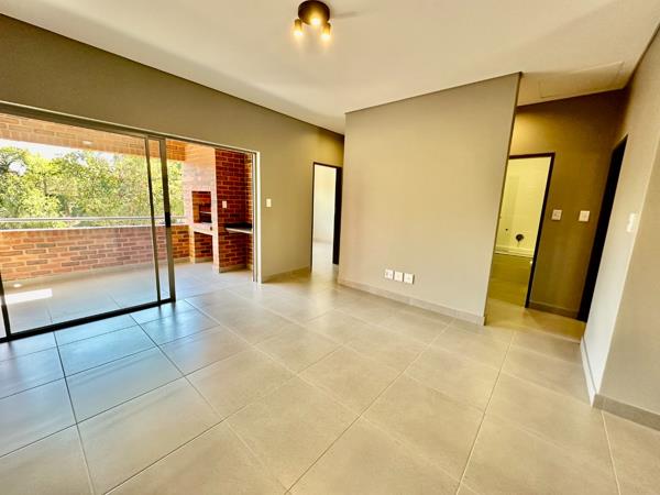 Designed for modern living, the open-plan layout seamlessly connects the stylish kitchen and spacious living area to a covered patio, complete with a built-in Braaiperfect for outdoor entertaining. The apartment showcases premium finishes, including floor-to-ceiling bathroom tiling, sleek mixer taps, and contemporary closed-coupled toilets. The main bathroom features a chic glass-enclosed shower, while the second bathroom includes a built-in bath with a shower.