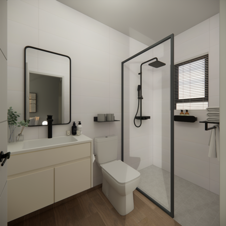 Elegant vinyl wood flooring in bedrooms and bathrooms
