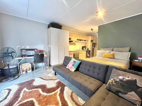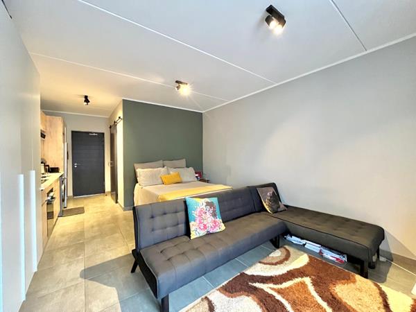 Discover this modern 36 sqm studio apartment located within a secure gated community in Menlo Park, Pretoria. The open-plan layout efficiently integrates living, sleeping, and a contemporary kitchen, featuring light wood cabinetry and integrated appliances including a washing machine. The stylish bathroom boasts a walk-in glass shower, floating vanity, and an arched mirror. Enjoy a private balcony, perfect for relaxation. This property offers fibre connectivity and enhanced security with CCTV and access control, ensuring a comfortable and convenient lifestyle. Menlo Park is a sought-after suburban area known for its vibrant atmosphere and amenities.