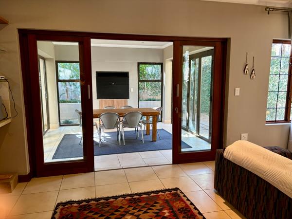 This townhouse represents a harmonious fusion of contemporary sophistication and serene living. The two open plan living areas are spacious with sliding stack doors opening to the compact low maintenance garden. The built- in braai can be used as a fireplace on cold winter nights. The lower level enters directly from the double garage into a well designed kitchen with high end finishes.
