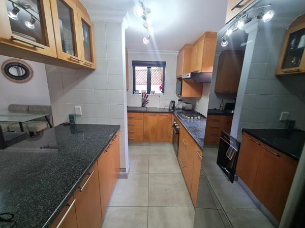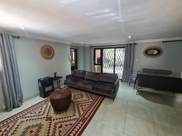 Open plan kitchen and scullery with Gas Hob and space for two appliances. Open plan dining room and lounge with sliding door opening up to a balcony overlooking the private and easy to maintain garden. The complex is pet friendly and will allow up to two pets.