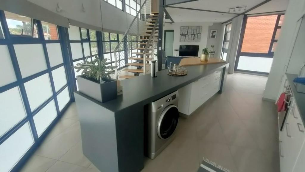 Kitchen: Elegant and modern with stylish cabinetry, built-in fridge, and a chic kitchen nook all framed by sweeping views.