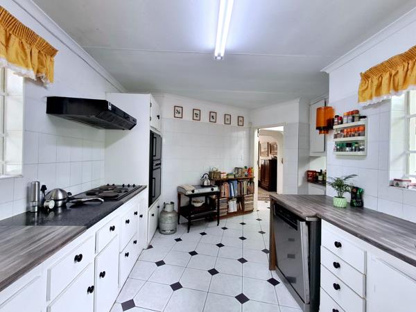 The well-appointed kitchen, with a pass-through serving hatch into the dining room makes for comfort when enjoying meals with family and friends in the dining room.