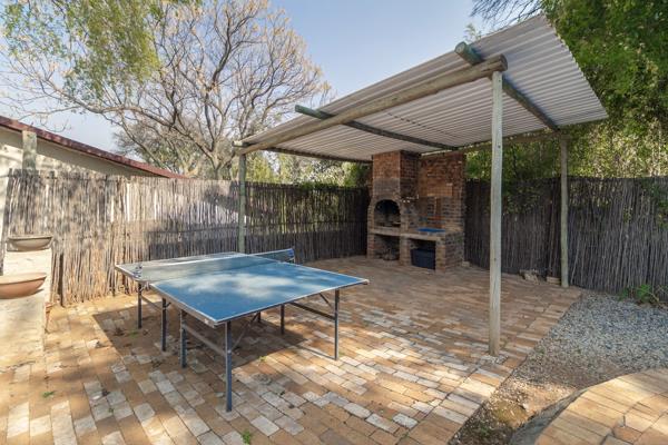 Step outside, and youll find yourself in a private oasis. The expansive garden, kept lush with a borehole and manual irrigation system, frames a sparkling swimming pool and a large lapa with a built-in braai the ultimate setting for outdoor living. Whether its weekend braais, poolside lounging, or family celebrations, this space was made for making memories.