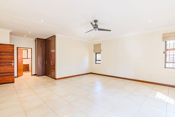 A spacious open plan entertainment area, undercover patio with built-in braai, large upstairs balcony and a small low-maintenance garden complete the offering of this leafy, quiet and well positioned home.