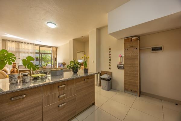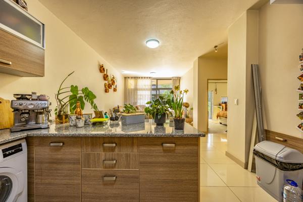 This modern and well-maintained 2-bedroom, 1-bathroom apartment is ideally positioned on the ground floor of a secure and popular complex in Monument Park, Pretoria East. The open-plan kitchen boasts sleek marble countertops, a built-in stove, oven, extractor fan, and integrated fridge, dishwasher, and washing machine all neatly concealed behind stylish wooden cabinetry. The kitchen includes a practical breakfast nook and flows seamlessly into the light-filled lounge area, which is fibre-ready for easy internet connectivity.