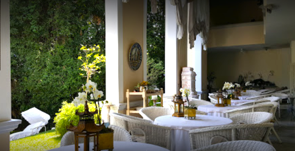 The main building overlooks lush, sprawling gardens, providing a picturesque setting for events and relaxation, including wellness facilities Swimming pool, sauna, spa etc.